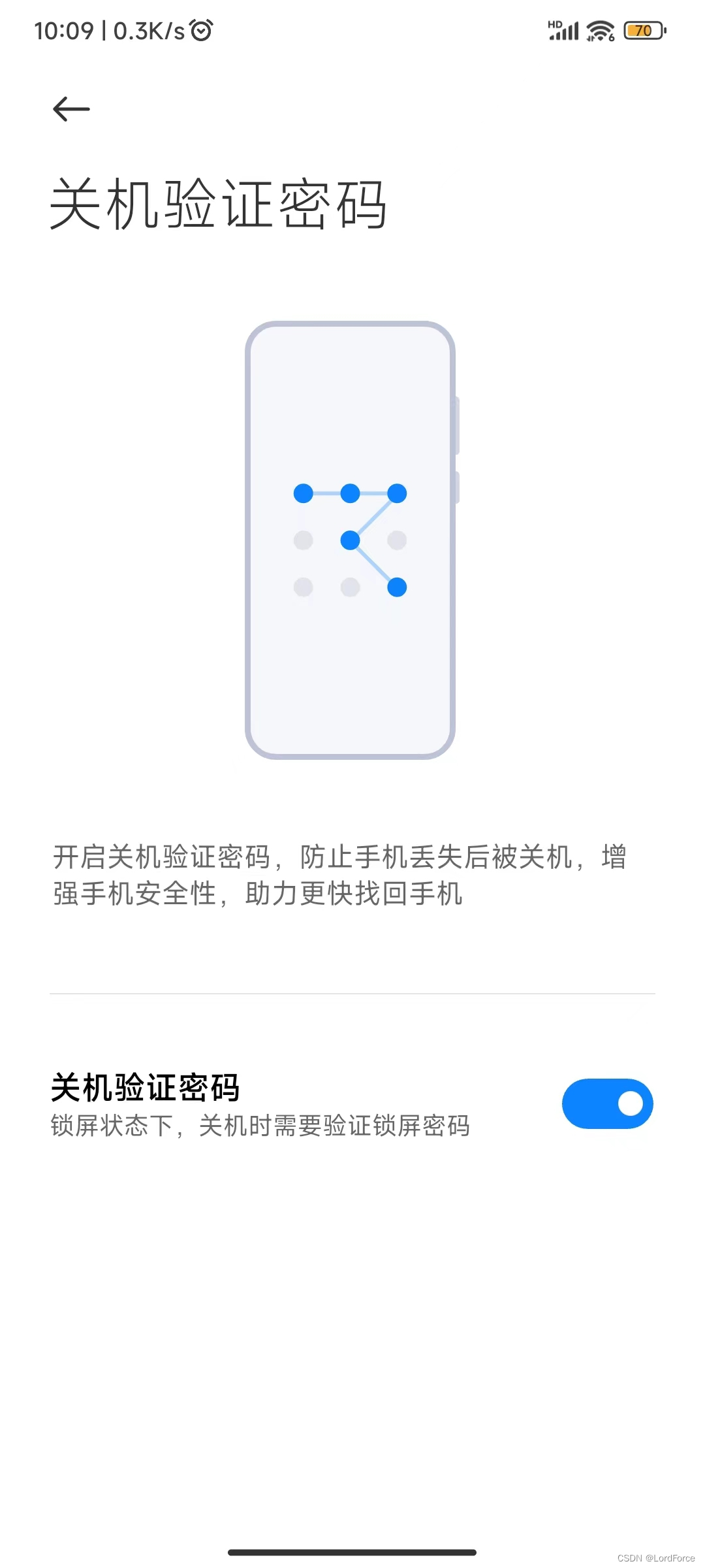 35. 设置 -- 安全, 关机验证密码,点击开启。这样可以在手机锁屏状态下,关机时需要验证锁屏密码。