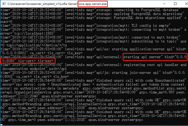 \-- 浏览器会自动打开 LoRa Server,请登录:用户名=admin 密码=admin