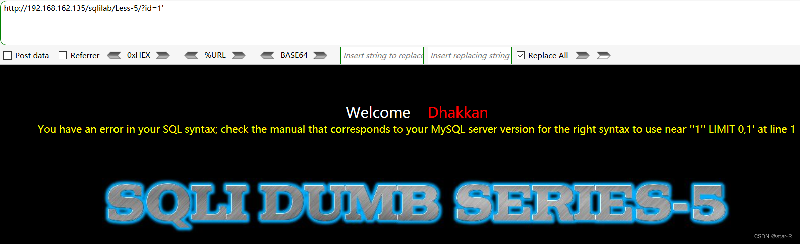 http://192.168.162.135/sqlilab/Less-5/?id=1'