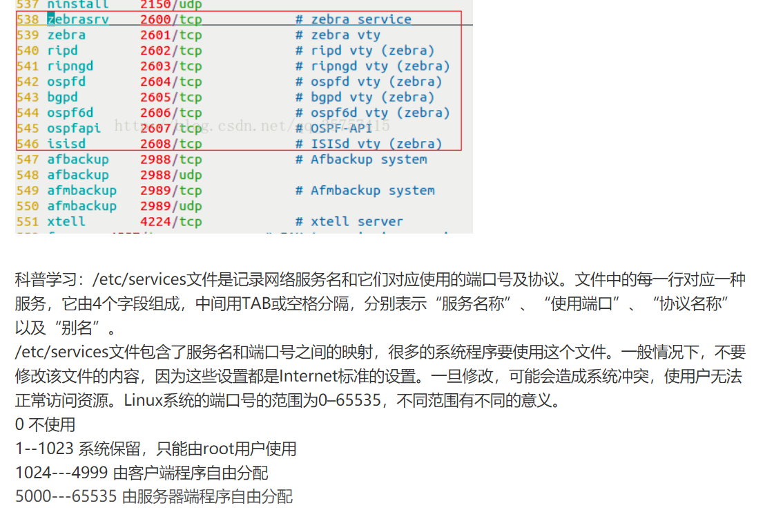 首先 cat /etc/service 可以看到各种协议所对应的接口
