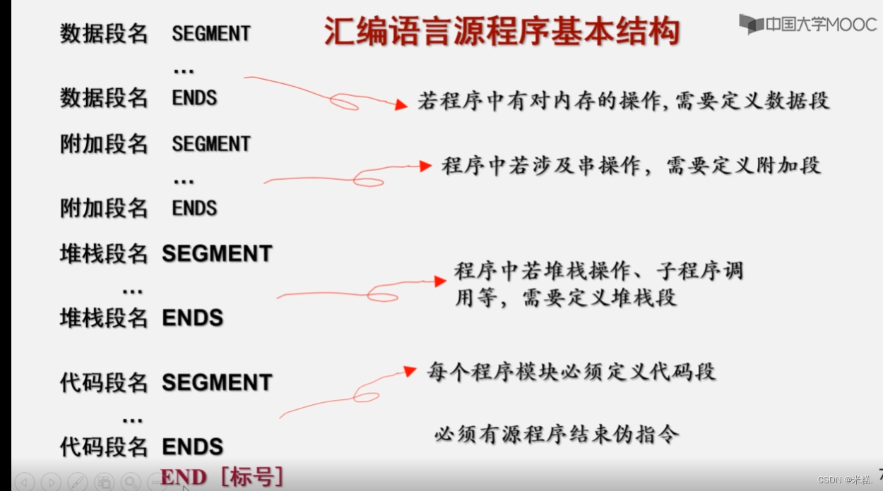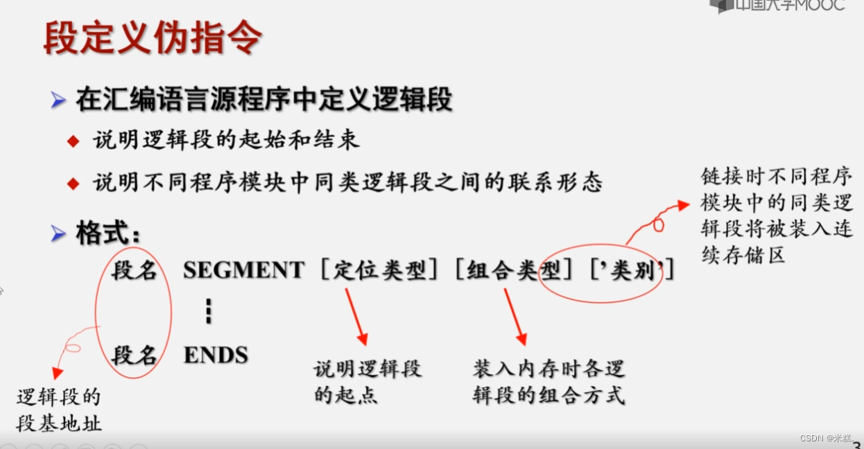 其中,segment_name 是用来标识段的名称,可以自定义,在 SEGMENT 和 ENDS 之间可以定义代码或数据。