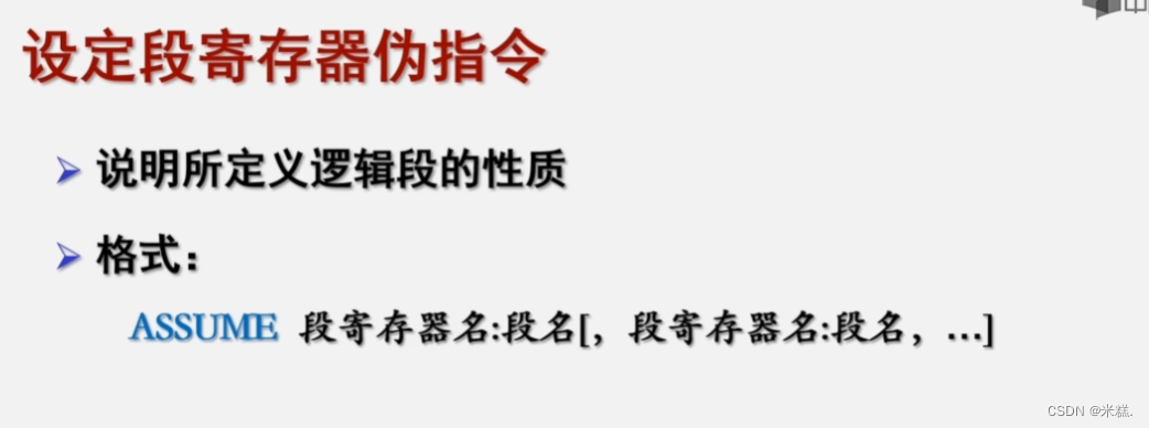 在这里,ASSUME 指令就像是一个约定,它告诉计算机哪个段寄存器应该指向哪个逻辑段。通过使用 ASSUME 指令,我们可以建立段寄存器和逻辑段之间的关联关系。