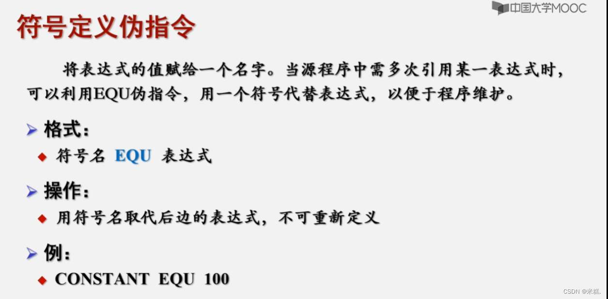 总的来说,伪指令是汇编语言中一些特殊的指令,它们的目的是帮助程序员更轻松地组织和管理汇编程序,使得代码更加可读、易于编写和维护。
