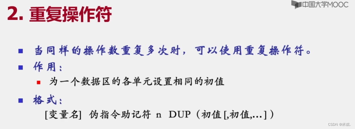 重复操作符经常用来声明一个数据区。也就是说我们并不关心这片区域的内容是什么,我只想要有这么一块区域,以后可以用来存放东西比如运算结果等等。