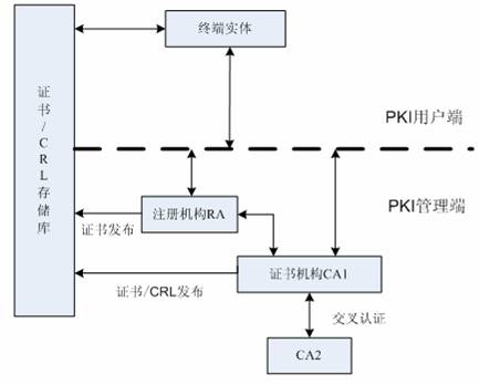 PKI一般包括证书签发机构(CA)、证书注册机构( RA)、证书库和终端实体等部分。