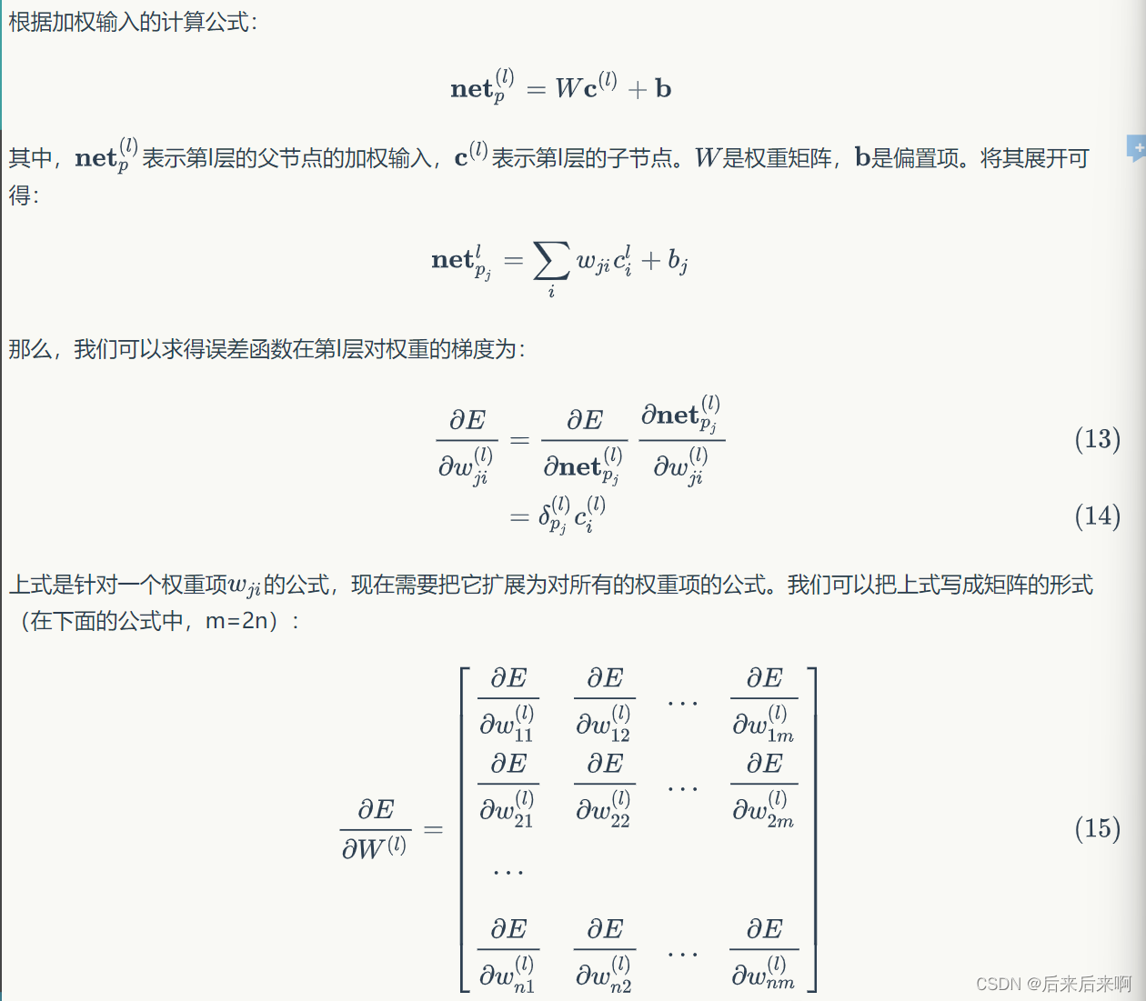 定义δp为误差函数E相对于父节点p的加权输入netp的导数,即:
