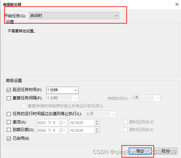 设置启动时运行,其余按需勾选
