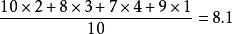 当一组数据中的某些数重复出现几次时,那么它们的平均数的表示形式发生了一定的变化.例如,某人射击十次,其中二次射中10环,三次射中8环,四次射中7环,一次射中9环,那么他平均射中的环数为:
