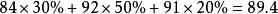 88×10%+90×10%+92×30%+85×50%=87.9