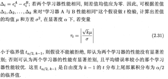 绪论 模型评估与选择(1) 模型评估与选择(2) 模型评估与选择(3) 线性模型 决策树 神经网络 支持向量机 贝叶斯分类 集成学习 聚类 降维与度量学习 特征选择与稀疏学习 计算学习理论 半监督学习 概率图模型 规则学习 强化学习 模型评估与选择(3) 本次学习的都是一些检验不同学习器的性能是否相同的方法,在统计的过程当中大家应该都学过。 2.4.2 交叉验证t检验 对于两个学习器A和B,如果我...