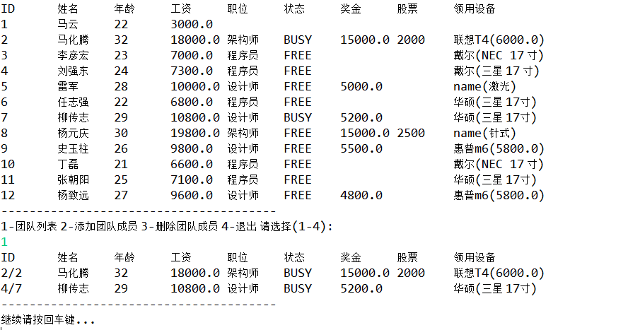 JAVA面向对象基础编程项目-开发人员调度系统