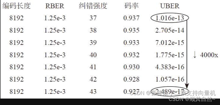 用户数据最终都是写在闪存页(Page)上面,闪存页空间除了用户空间,还有额外的预留空间,这部分空间可以用来写ECC校验数据。用户数据大小固定,需要更强的纠错能力,这就需要更多的ECC空间。因此,纠错强度受限于闪存页的预留空间。越多的预留空间就能提供越强的ECC纠错能力