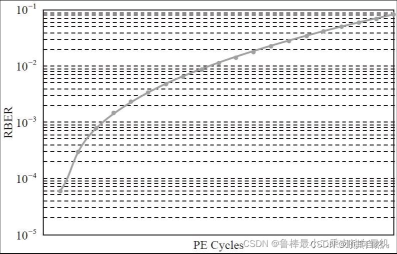 图3-53 同一个闪存芯片内不同闪存块在不同寿命时的RBER 图片来源于《深入浅出SSD:固态存储核心技术、原理与实战》