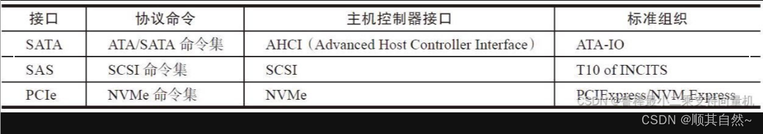 表1-5 SATA/SAS/PCIe接口协议 表格来源于《深入浅出SSD:固态存储核心技术、原理与实战》