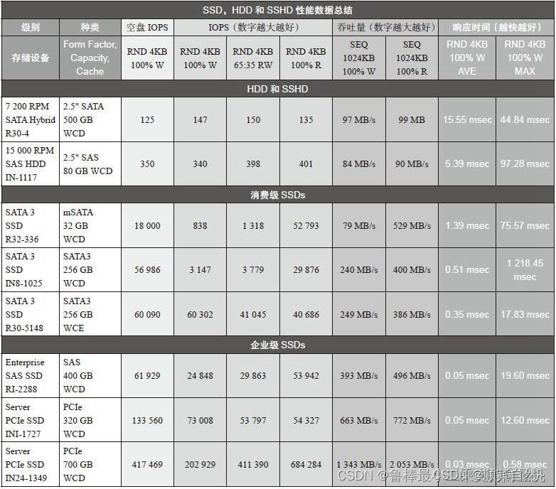 表1-2 HDD与SSD性能对比 表格来源于《深入浅出SSD:固态存储核心技术、原理与实战》