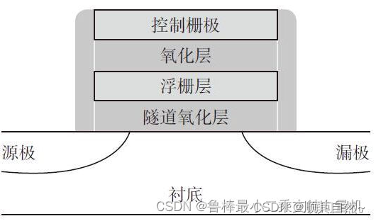 图1-9 浮栅晶体管结构 图片来源于《深入浅出SSD:固态存储核心技术、原理与实战》