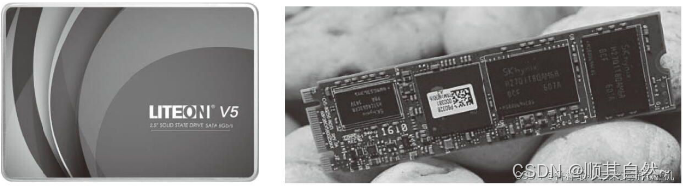 图1-2 SSD外观(左:2.5寸盘;右:M.2SSD) 图片来源于《深入浅出SSD:固态存储核心技术、原理与实战》