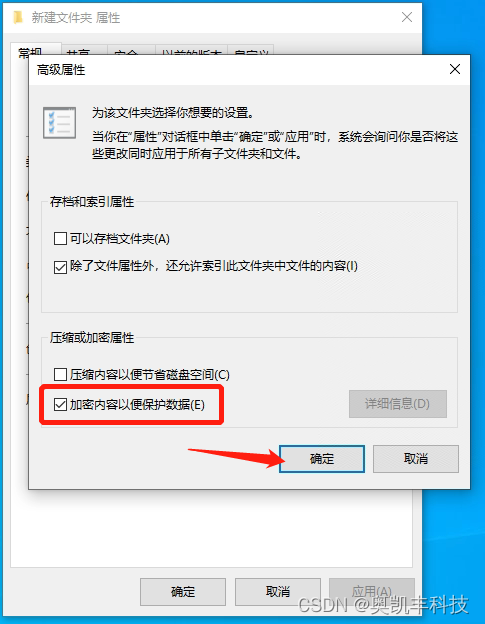 在高级设置界面中,勾选上【加密内容以便保护数据】点击确定就可以完成加密了。