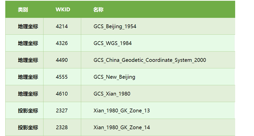 地理坐标系:BD09、WGS84、GCJ02、GOOGLE、EPSG:4326、CGCS2000