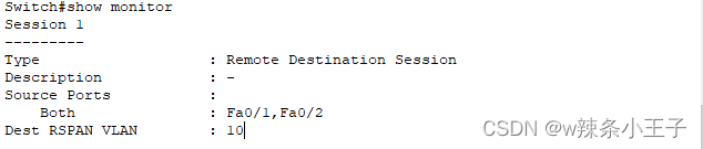 sw1(config)#monitor session 1 destination interface f0/2
