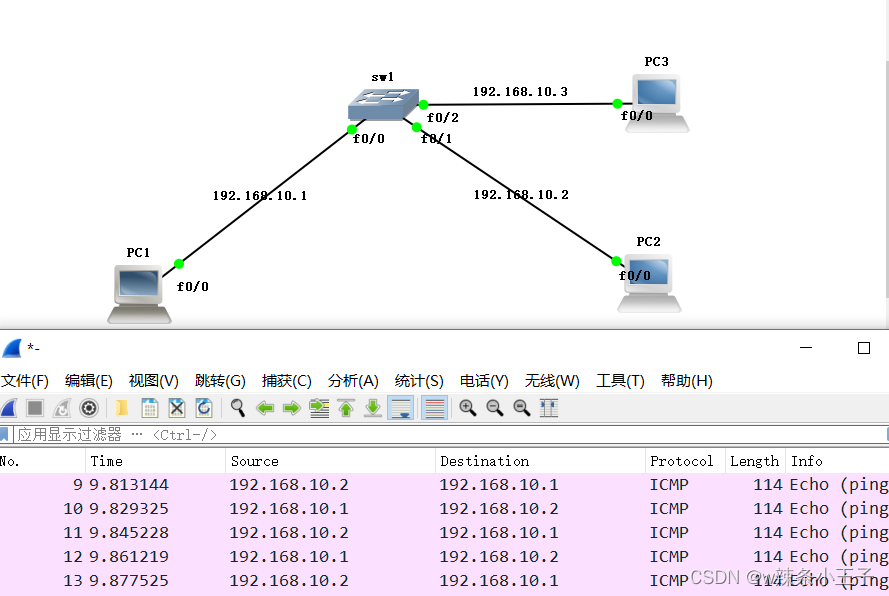 wireshark是抓取的sw1和PC3之间的流量