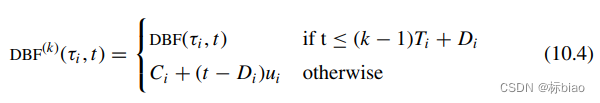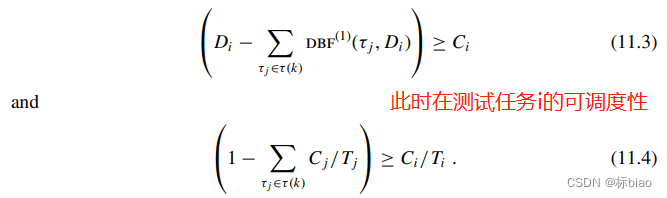 上面11.4式是用来 测试 截止期大于周期时候的任务的。?11.3式为什么这样就能充分性判定EDF可调度性了,我也没想清楚,这样岂不是和固定优先级调度时候一样的测试行为了,后面再来深究一下这个,原论文其实也有证明,大家可以看看(The Partitioned Multiprocessor Scheduling of Sporadic Task Systems)