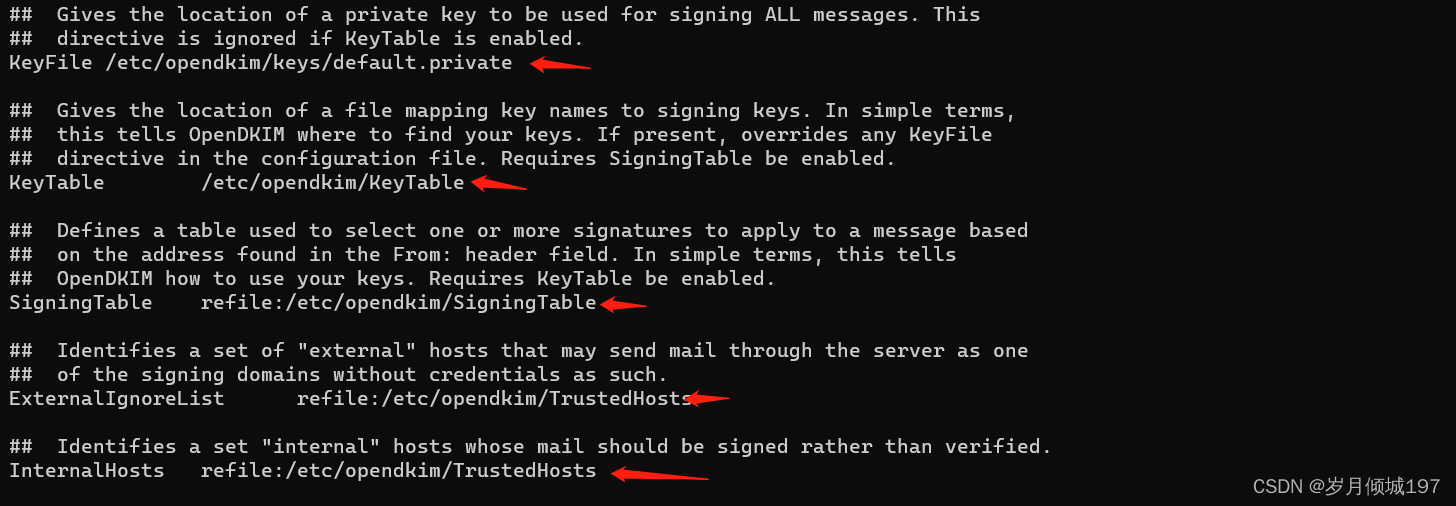首先,使用sudo yum install opendkim安装OpenDKIM. 这一步不需要考虑版本的问题。安装完成之后打开配置文件/etc/opendkim.conf,按照下图进行配置。