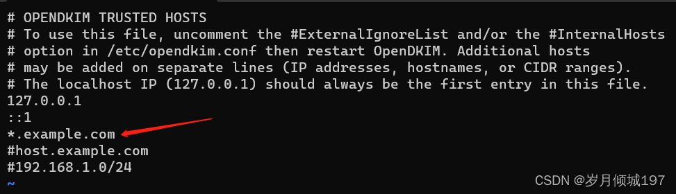 打开/etc/opendkim/TrustedHosts, 添加*.example.com, 如下图: