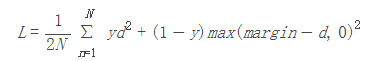 其中d=||an−bn||2,代表两个样本特征的欧氏距离,y为两个样本是否匹配的标签,y=1代表两个样本相似或者匹配,y=0则代表不匹配,margin为设定的阈值。