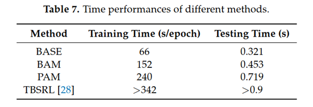 总的来说,我们提出的模块具有竞争性的时间性能和可接受的时间消耗。