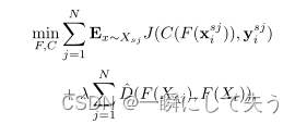 先前工作将深度学习和多源域自适应联系起来最小化每对源域和目标域之间的距离损失,以在所有域的公共特征空间中学习公共域不变特征。最小化公式为: