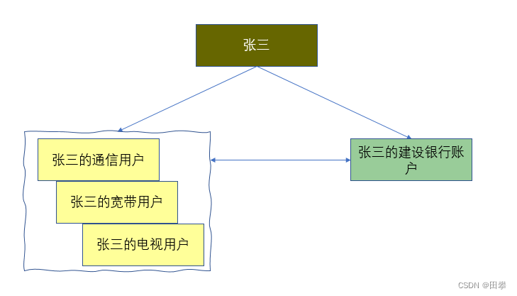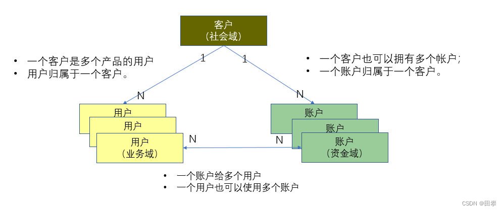 客户是体现了社会域的信息,用户体现了业务域的信息,账户体现的是资金域的信息。