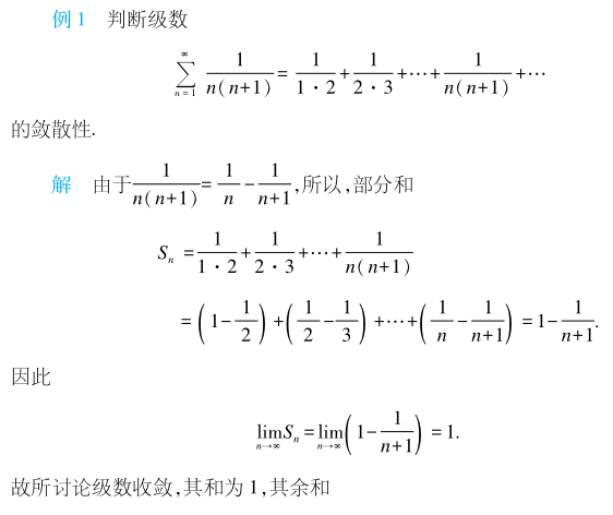 虽然计算部分和的极限来判断级数是否收敛这种方法很直接、易懂,但是很多情况下我们很难求出部分和,更不用说求出其极限了。因此,判断级数的敛散性,我们需要用更加方便的判断方法,在后面我们会陆续学到。