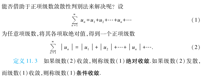 既有正项、又有负项的级数,称为任意项级数。为了能够将研究任意项级数的问题向研究正项级数的问题转化,我们需要对任意项级数作出一些处理。