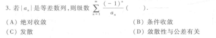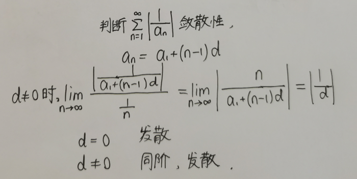 感谢评论区有伙伴指出此题解析存在错误,因为等差数列公差为零时,下面的分析有误,且显然原级数发散(不妨令