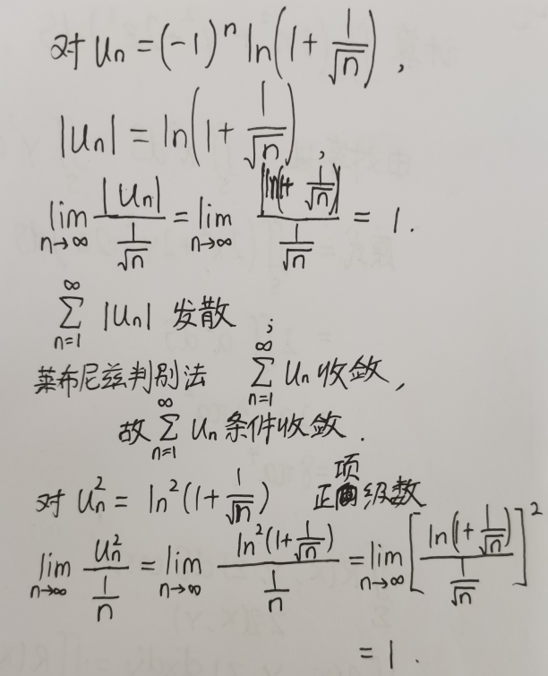 所以原级数收敛,现在还需要判断它是否绝对收敛:
