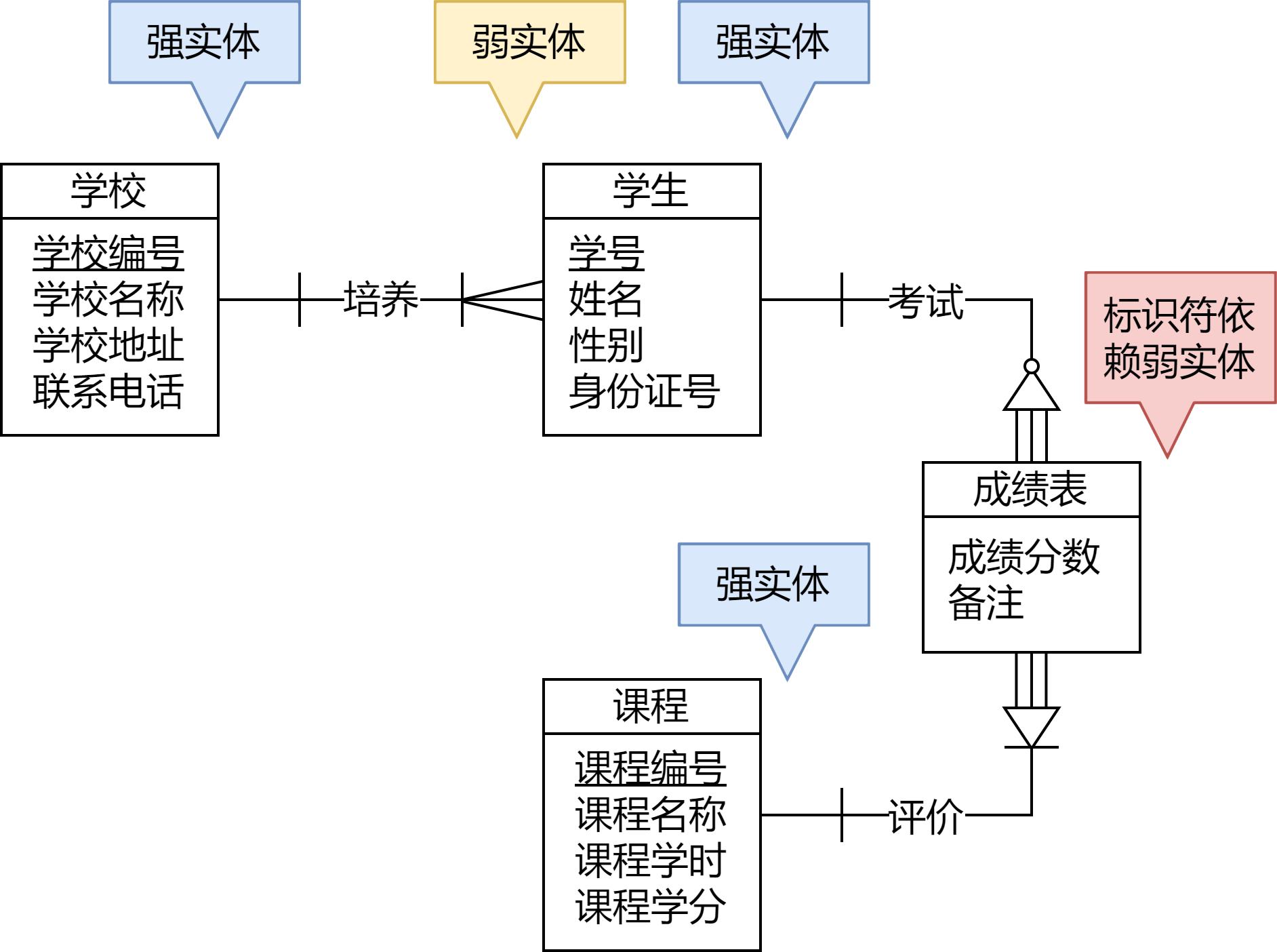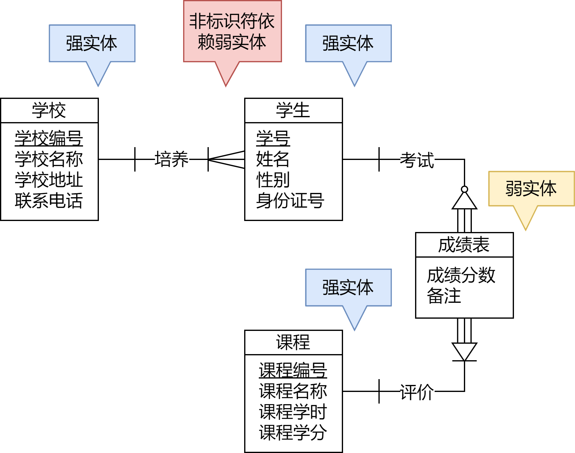 图中没有写出弱实体所包含的强实体的标识符。