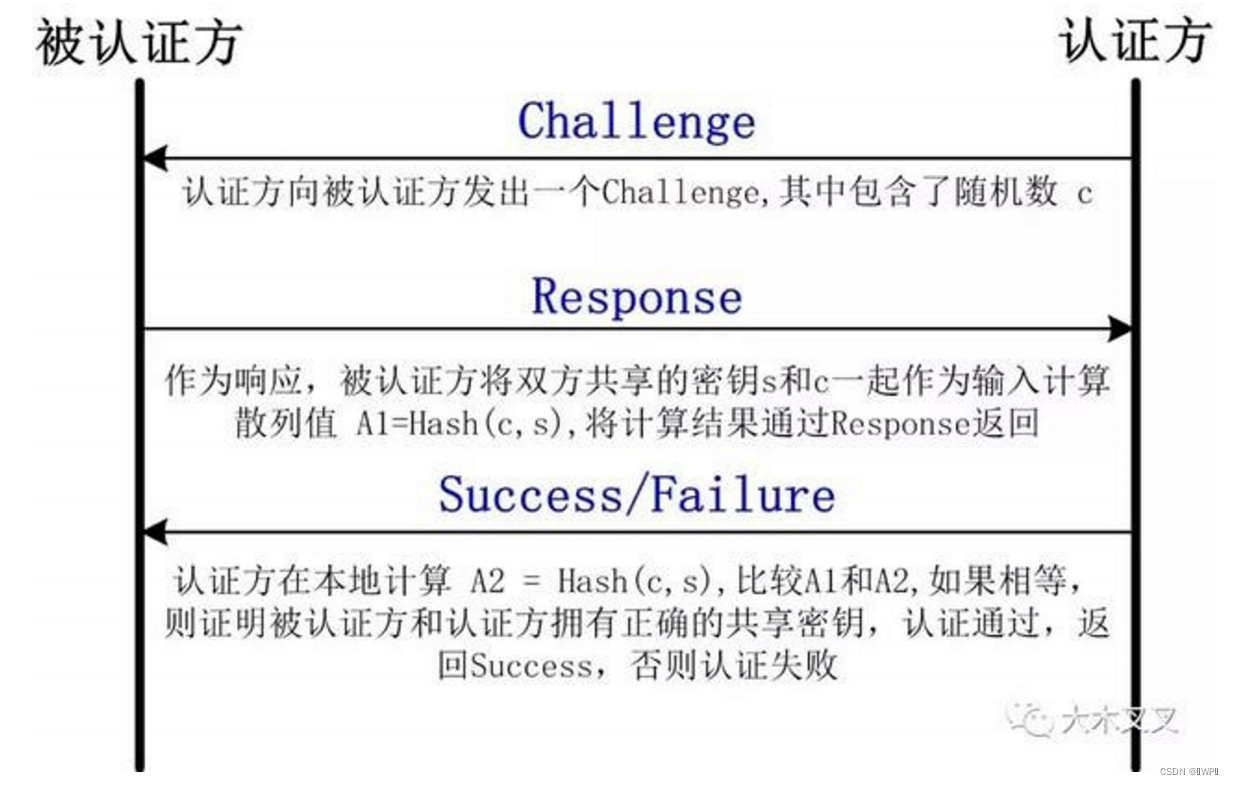 CHAP——挑战握手协议——安全性更高,不再是直接发送明文来进行认证,而是通过比对摘要值的方式来进行认证。