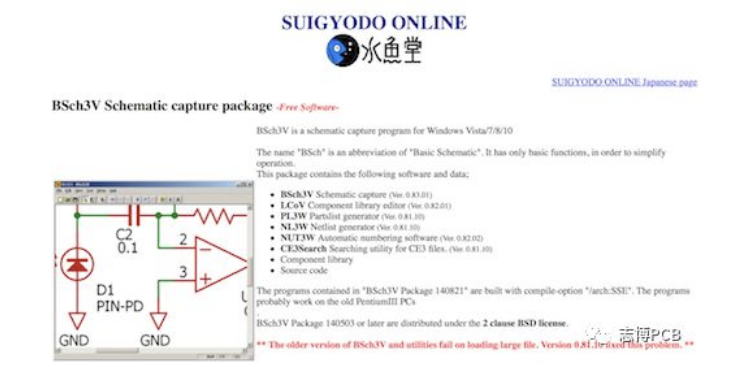 BSch3V是Suigyodo Online的流行PCB设计设计软件工具,适用于需要免费解决方案的电子工程师。BSch3V是一个原理图捕获程序,适用于Windows Vista / 7/8/10,具有简化操作的基本功能。