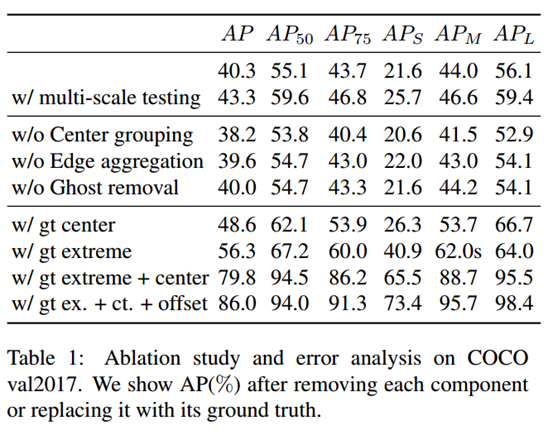 在single scale下精度比Corner Net还要低一点,但是其中APsmall更高。