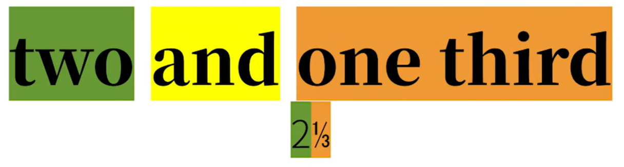 带分数,即“几右几分之几”,就是用and连接整数和分数部分: