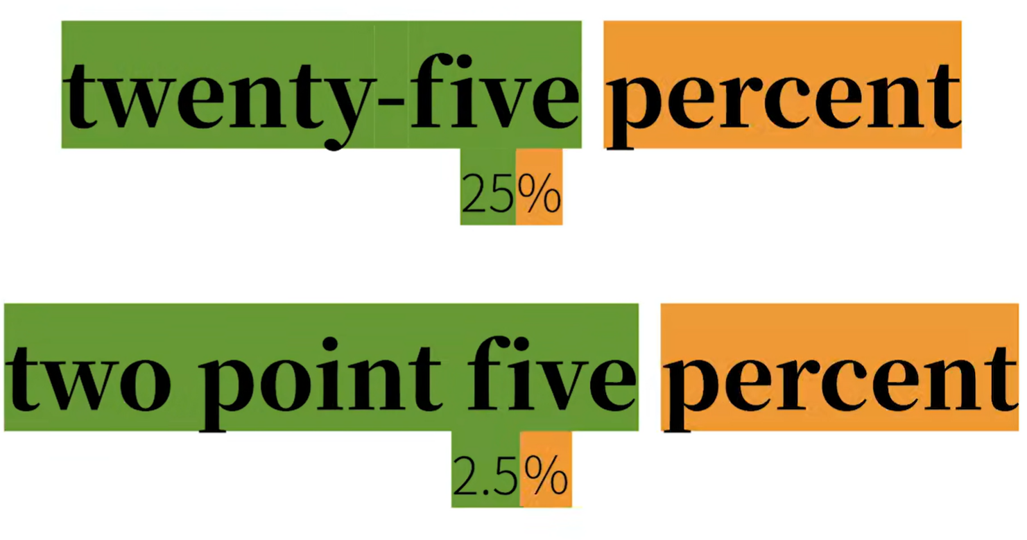 写法比较简单,只需要在基数词后面直接加百分数“precent”: