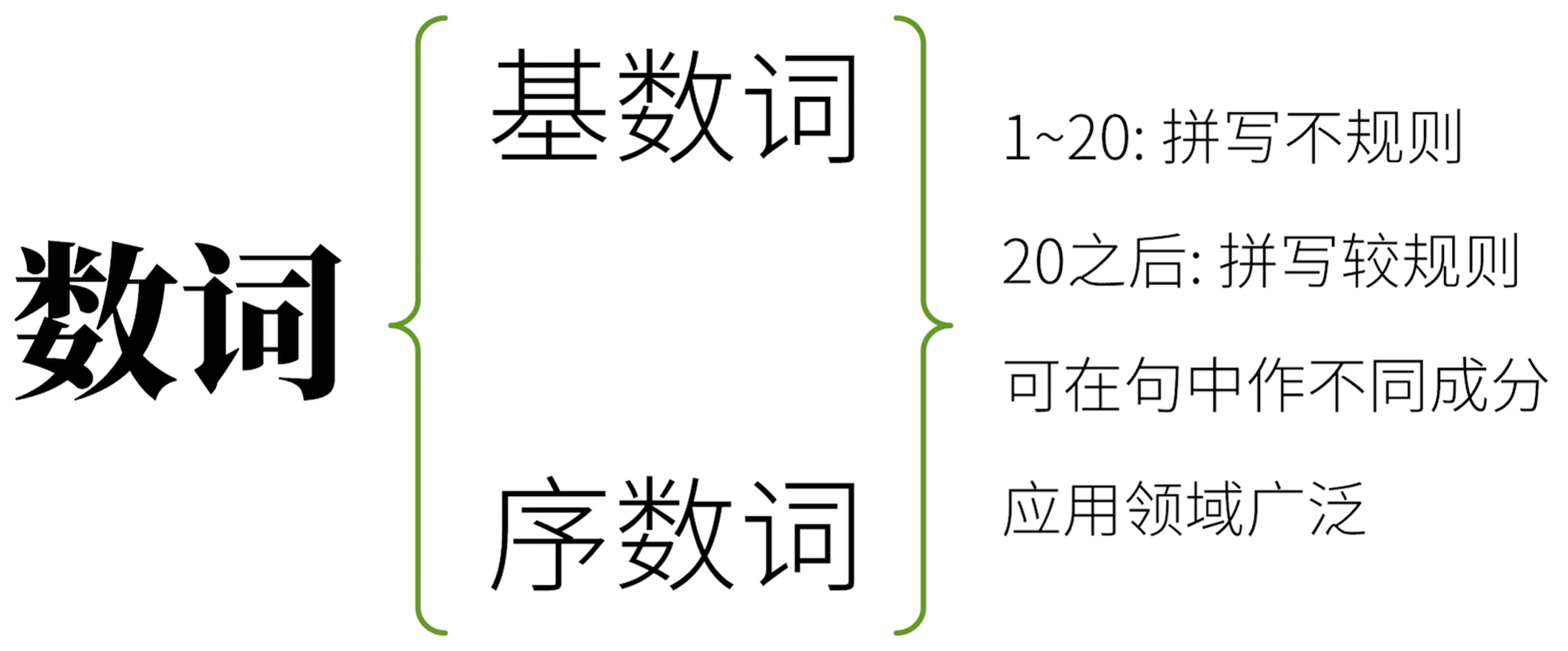 数词通常可以分为以下两大类,其中基数词描述“数量的多少”,序数词描述“顺序的先后”: