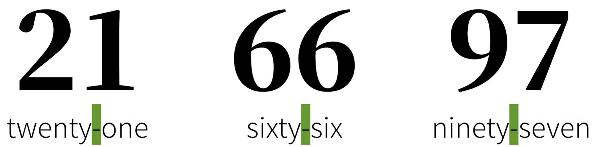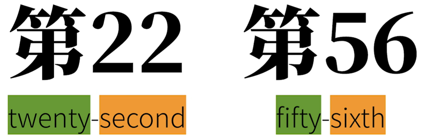 - 而第几十几的书写就是“基数词整十位+连字符+序数词第几”;