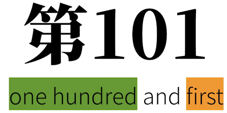 - 高位基数词和十位基数词间仍然用and连接,如“几+hundred+and+基数词整十位+连字符+序数词第几”。