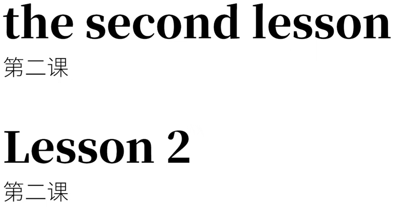 有时用基数词的表达和序数词相近,但有时又有细微差别。如基数词用法“Lesson 2”虽然也表示第二课,但是更倾向于表示第二课时,而序数词用法“the second lesson”就是指第二节课: