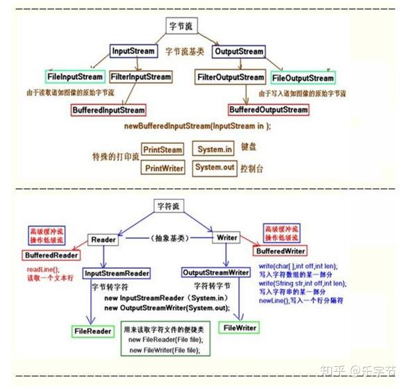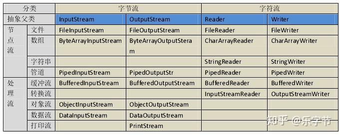 输入流和输出流。从节点到 java 内存叫输入流,从 java 内存到节点叫输出流。Java 的输入流主要由InputStream和Reader作为基类,输出流主要由OutputStream和Writer作为基类。