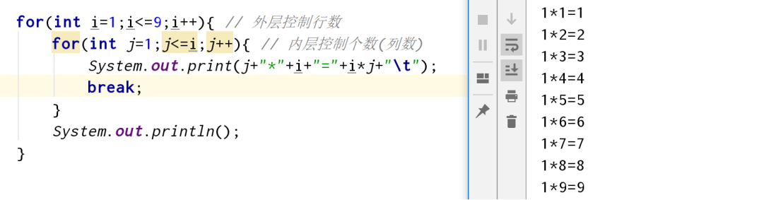 之前我们在switch开关语句中见过break,实际上break正如字面意思是结打破循环的意思,但是只打破最近的循环(就近原则)。