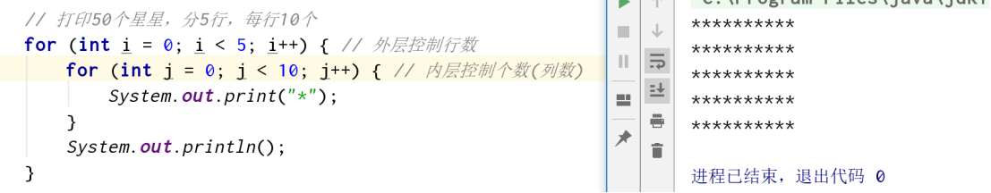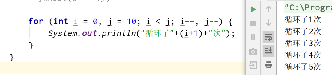 需注意的是,声明变量;布尔表达式式;参数控制中,声明变量与参数控制,并不是只能一条语句,即可以声明多个变量,也能控制多个参数,但是布尔表达式只能返回一个true或false。