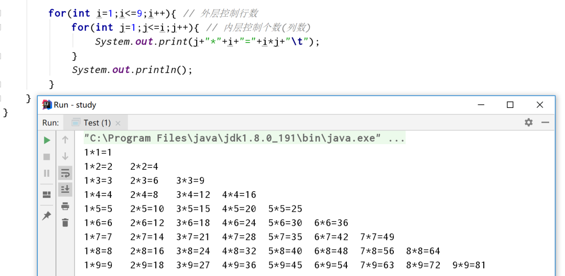 再来打印一张99乘法表(代码要多敲,读书百遍,其意自现):
